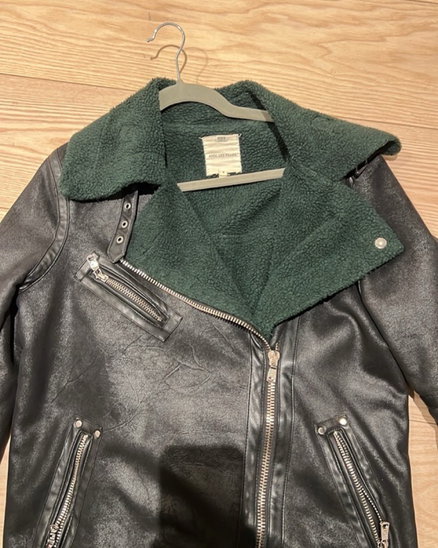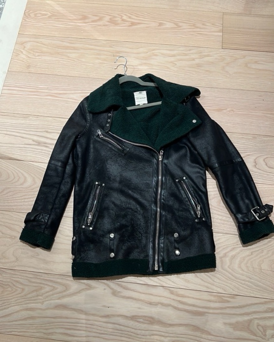 Oversized - can be worn with a sweater underneath! Faux Sherpa, green lining . In great condition!