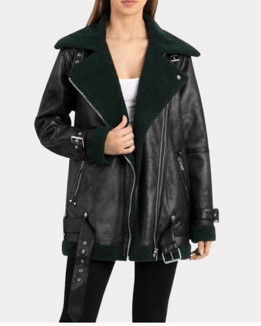 Avec les Filles Green Sherpa Moto Jacket by Avec Les Filles - Pickle
