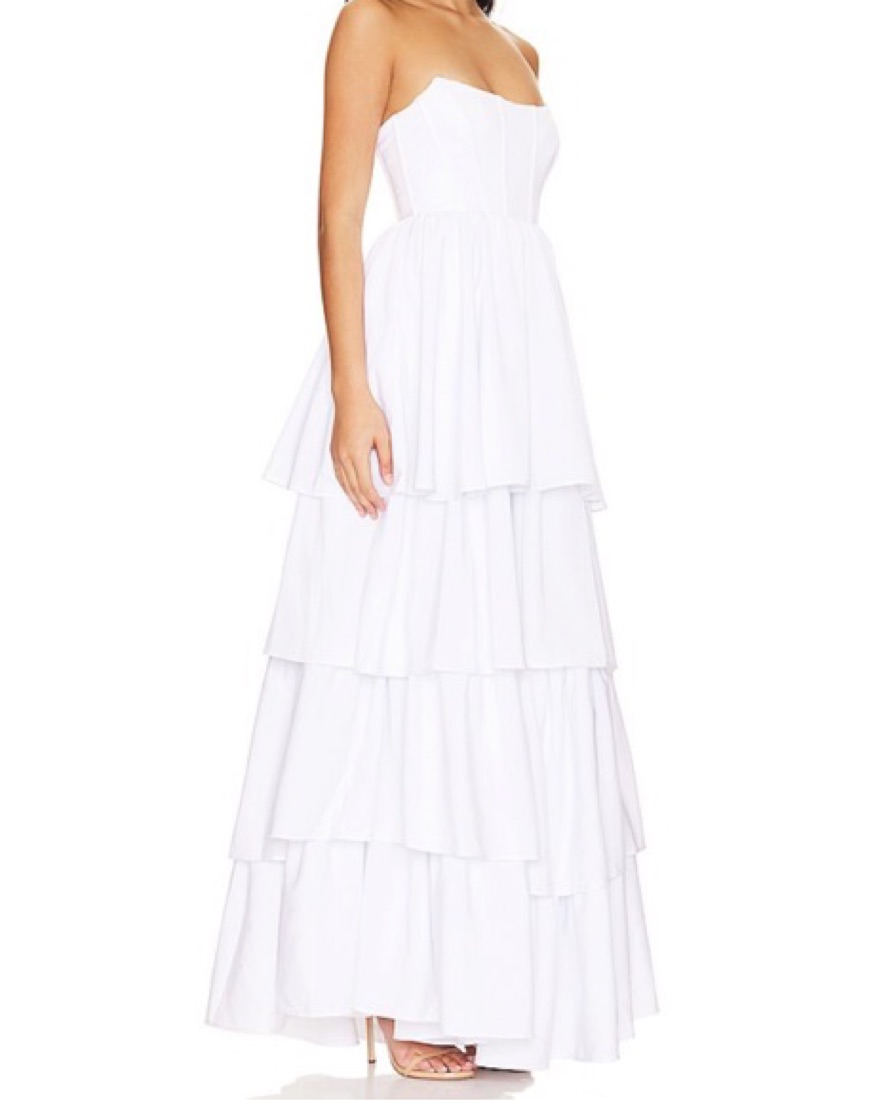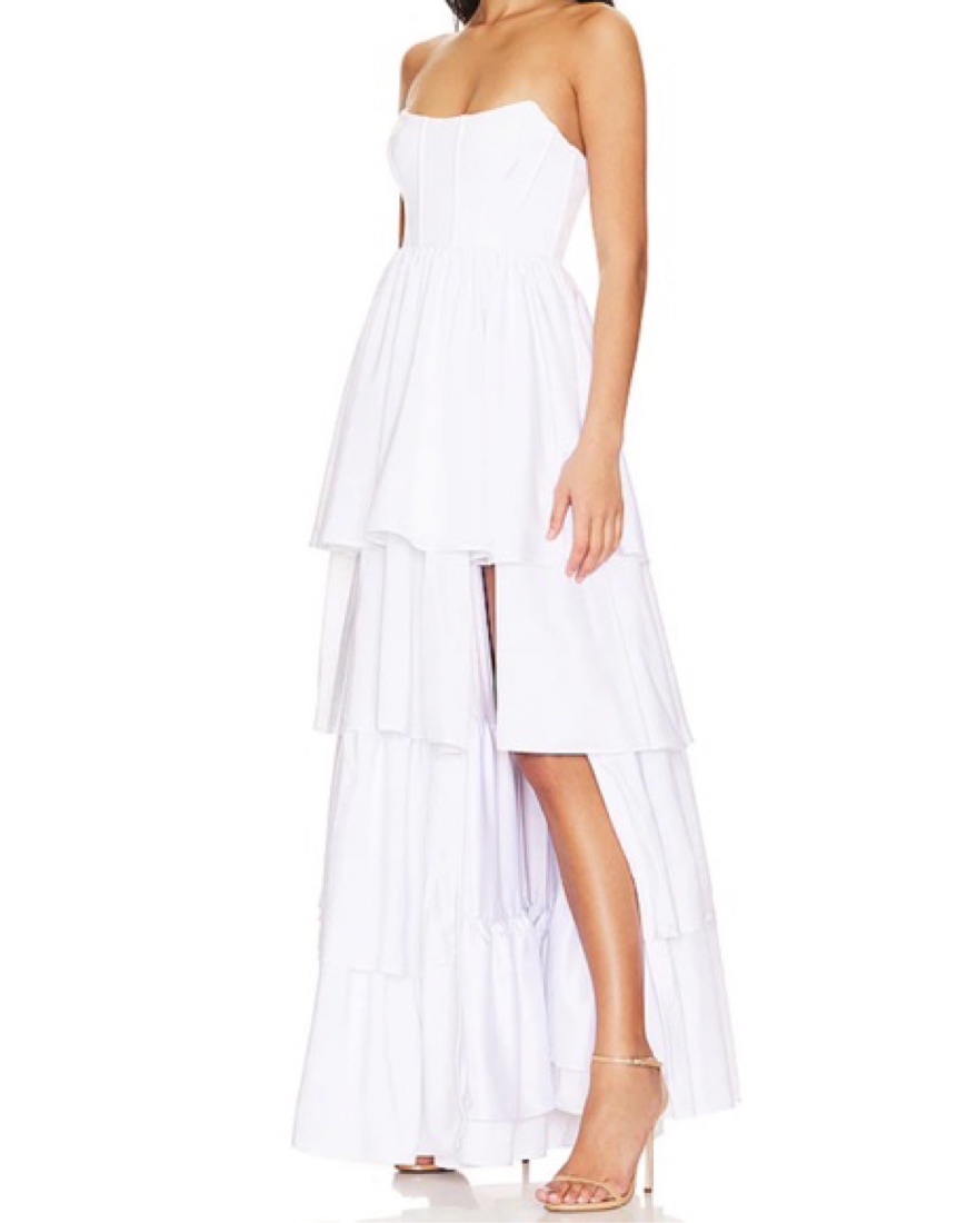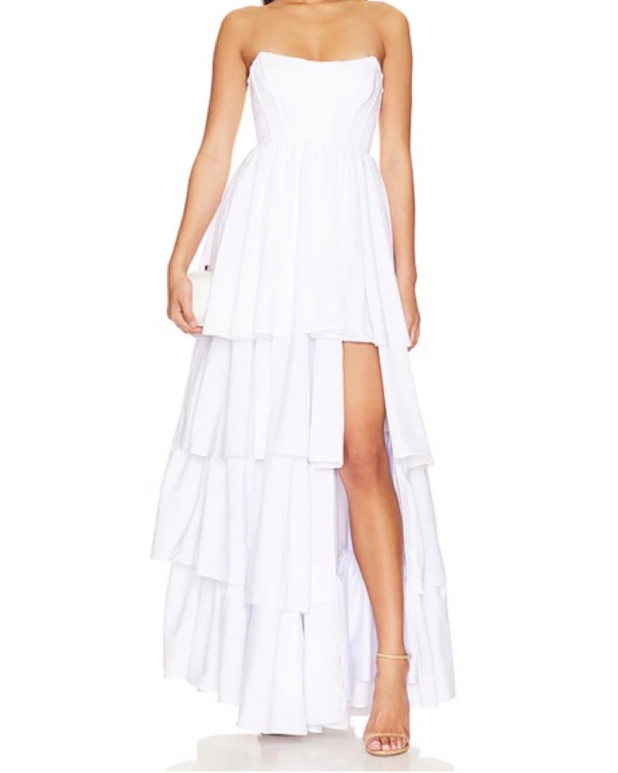White dress from Lovers + Friends on Revolve. Can be worn as either a gown or mini dress. Brand new, never worn