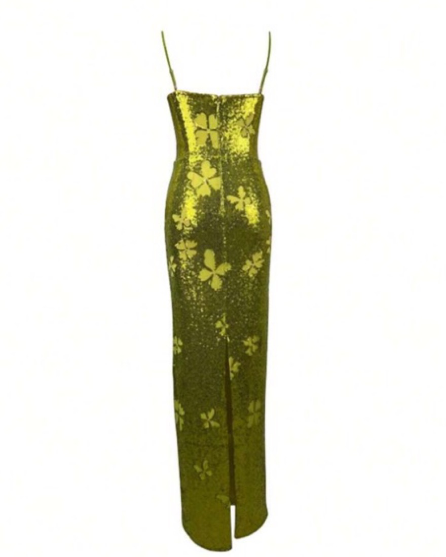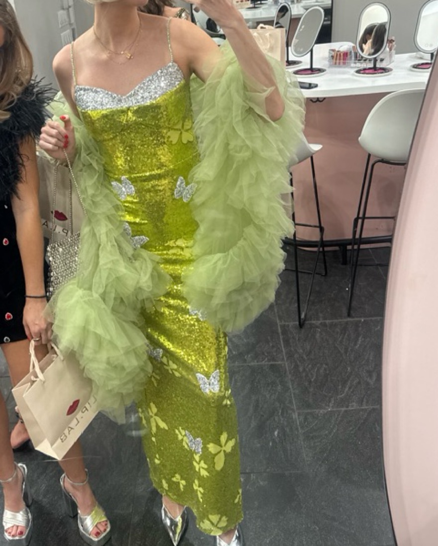 Green And Silver Sequin Butterfly Gown by - Pickle