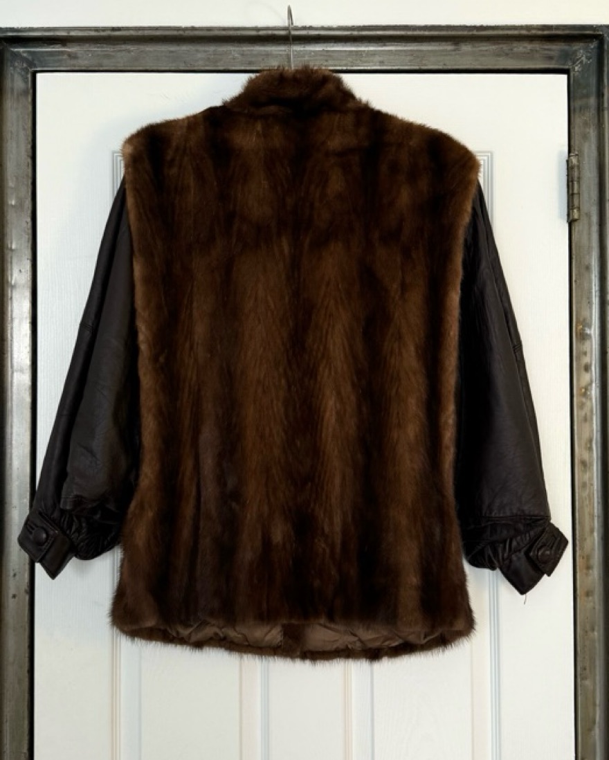 Vintage fur jacket with leather sleeves. Could fit sizes XS-M. Please wear with extra care and return in same condition or charges will apply! 🤎