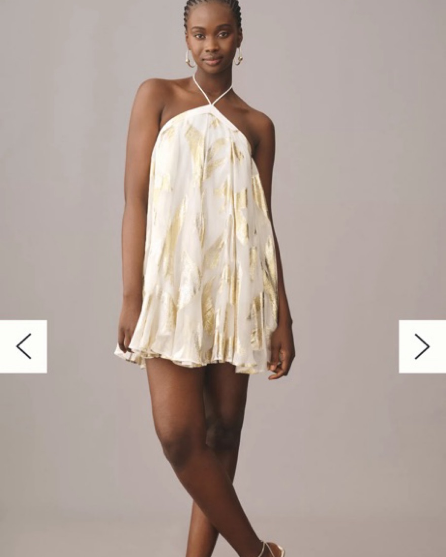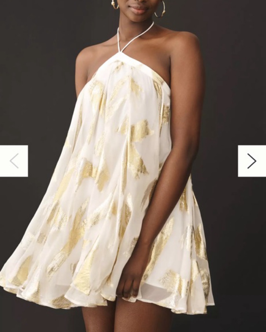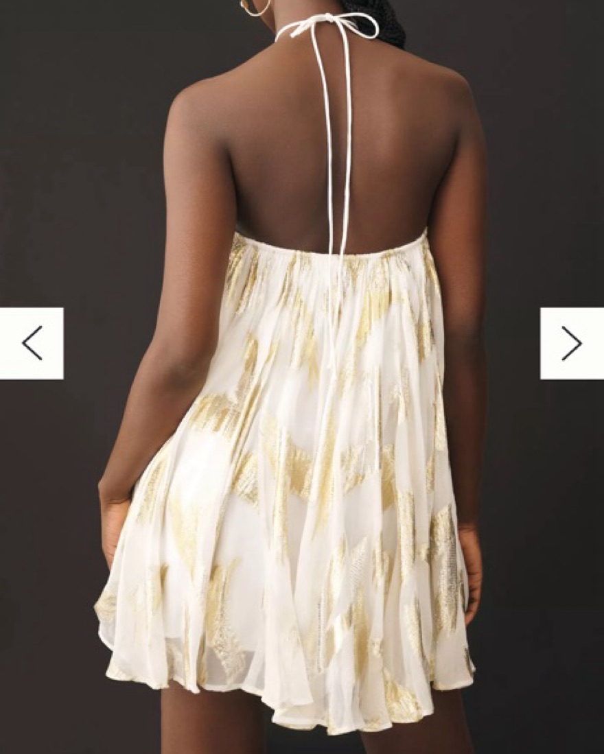 Anthropologie White/Gold Halter Dress by Anthropologie - Pickle
