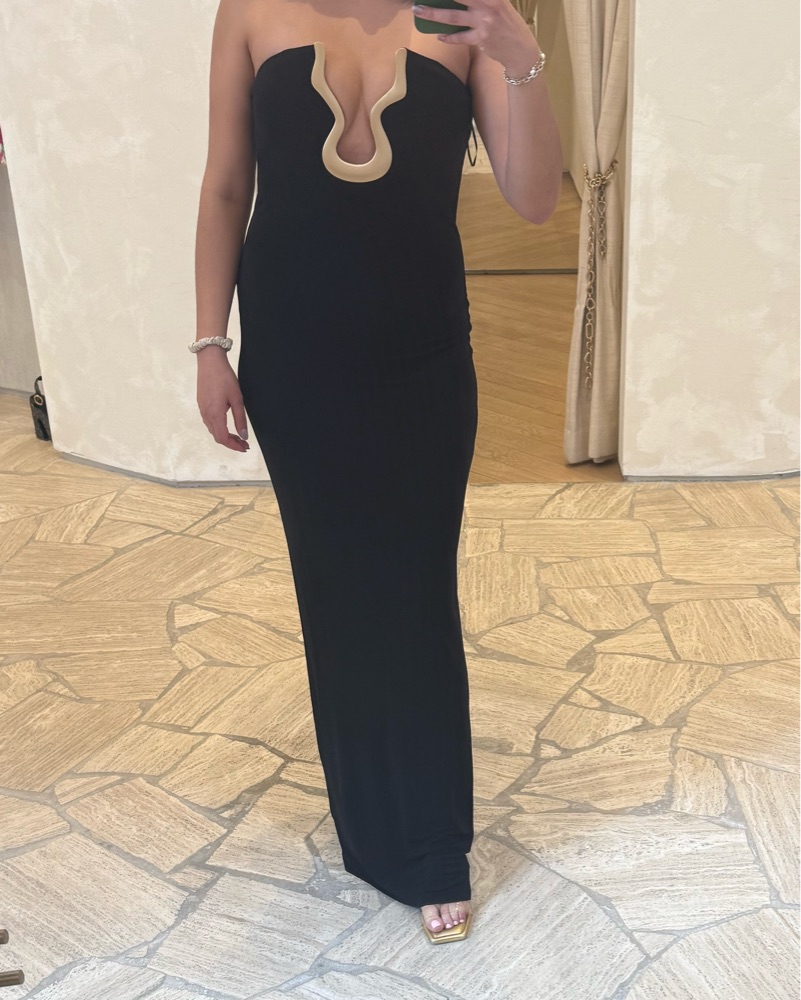 beautiful cult gaia dress with gold details. perfect for a wedding guest!