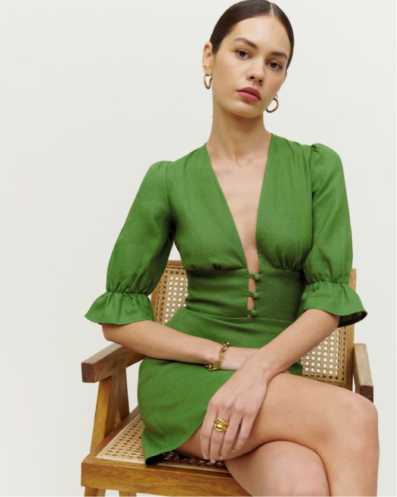 Reformation Simi Linen Dress - Green