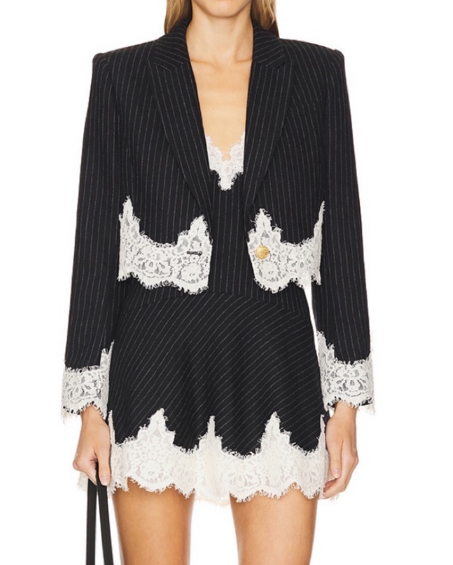 pinstripe melton fabric with contrast lace | cropped blazer | dress size 0, blazer size 2
