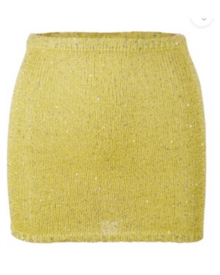 Yellow Knit Top + Skirt Sparkle Set from Asta Resort. Perfect for a beach vacation or a night out!