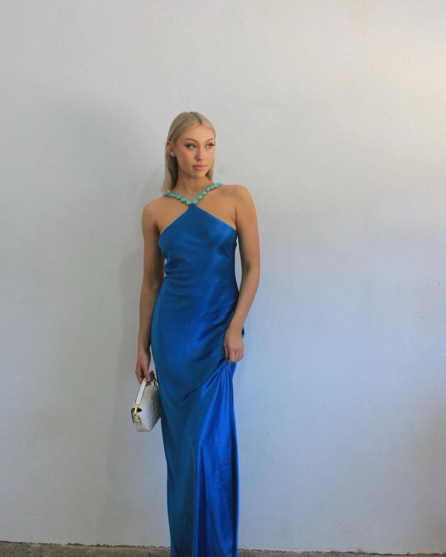 gorgeous blue color! tag is a size 12 but it was taken in to be a 6/8!