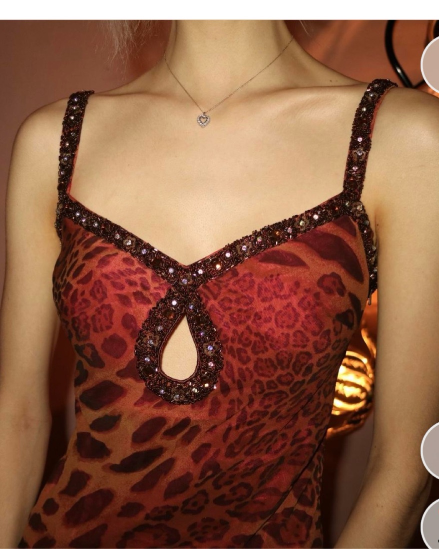 Vintage Beaded Cheetah Dress by Vintage - Pickle