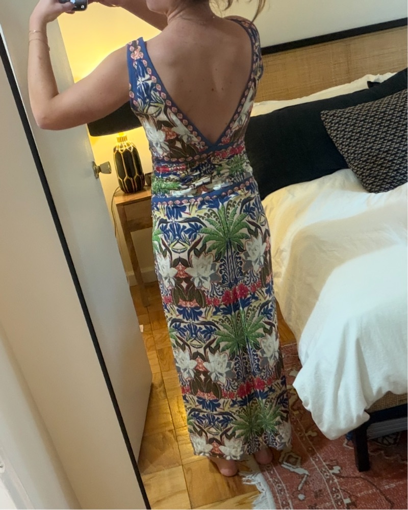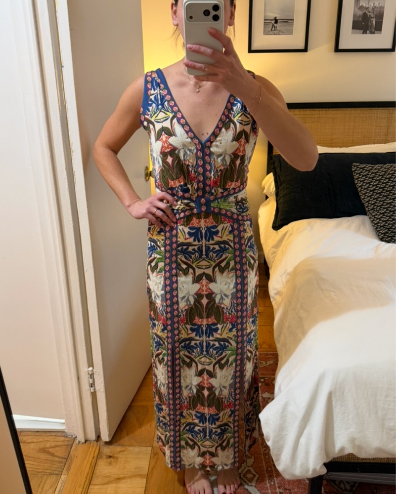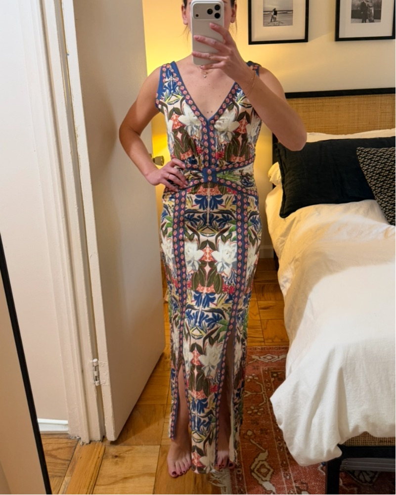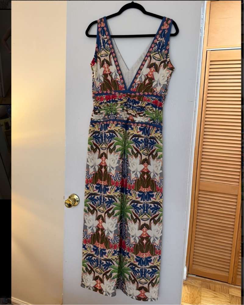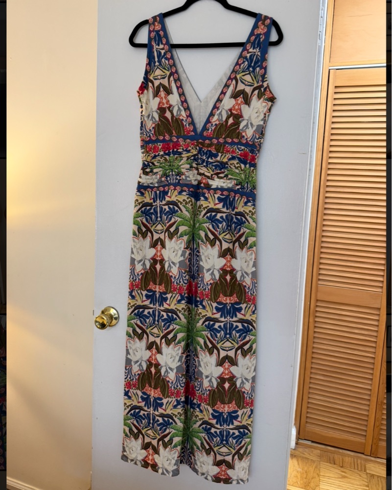 Floral midi dress with dual front slits. Hidden zipper closure. Will need to dry clean after so price reflects that.