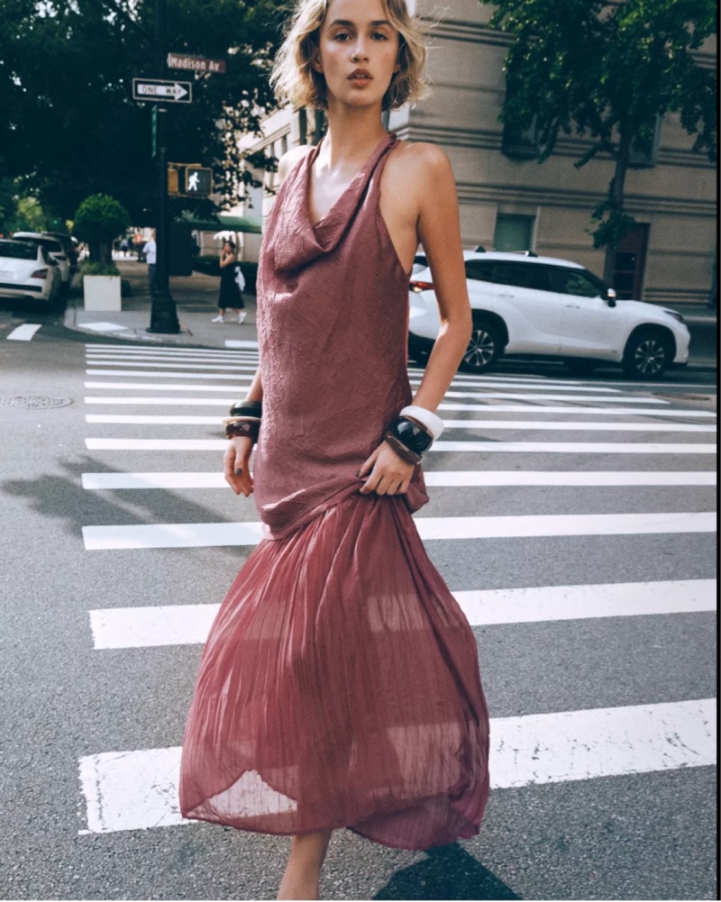 This enchanting pleated midi dress in a rich plum hue is perfect for formal events or special occasions. The draped neckline and flowing skirt create a sophisticated yet romantic look. Never been worn!