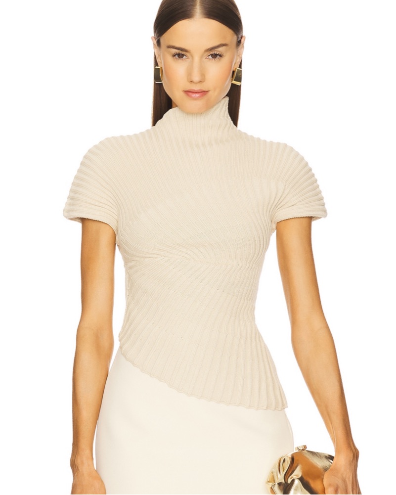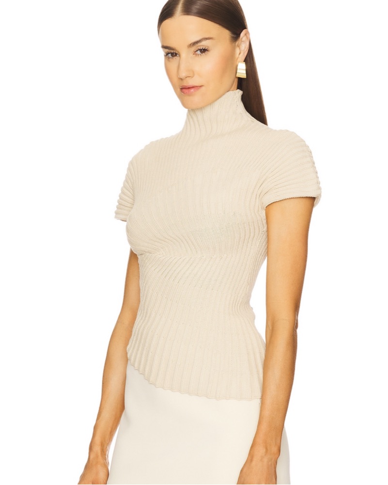 Cult Gaia knit top in beach. 100% cotton. Hand wash. Mid weight rib fabric with asymmetrical hem. Fits true to size!