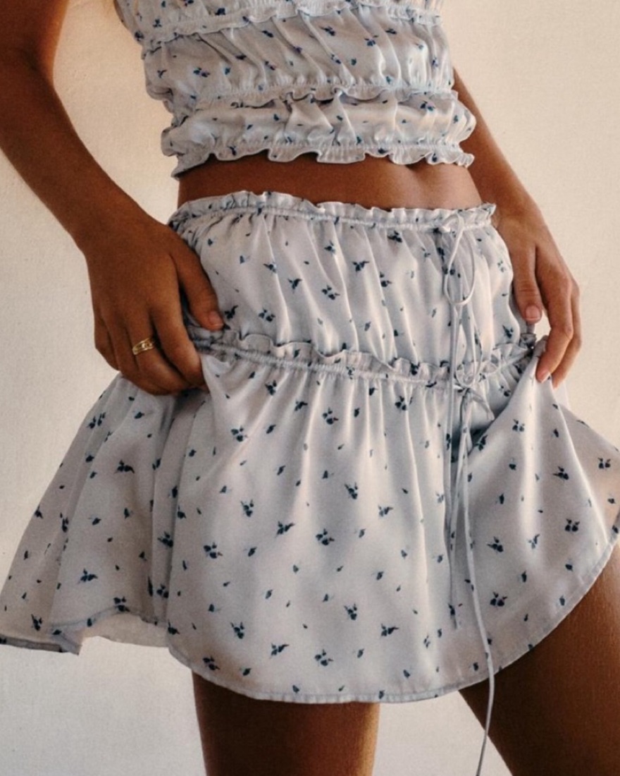 So cute, skirt is adjustable with the ties. Such a good festival set!