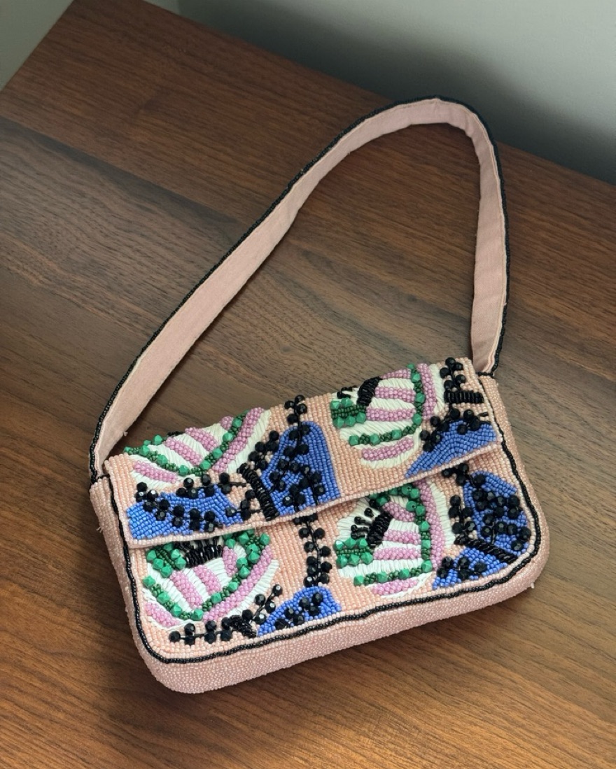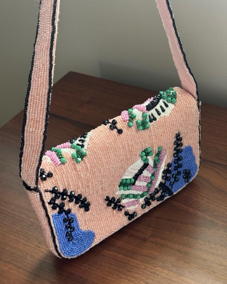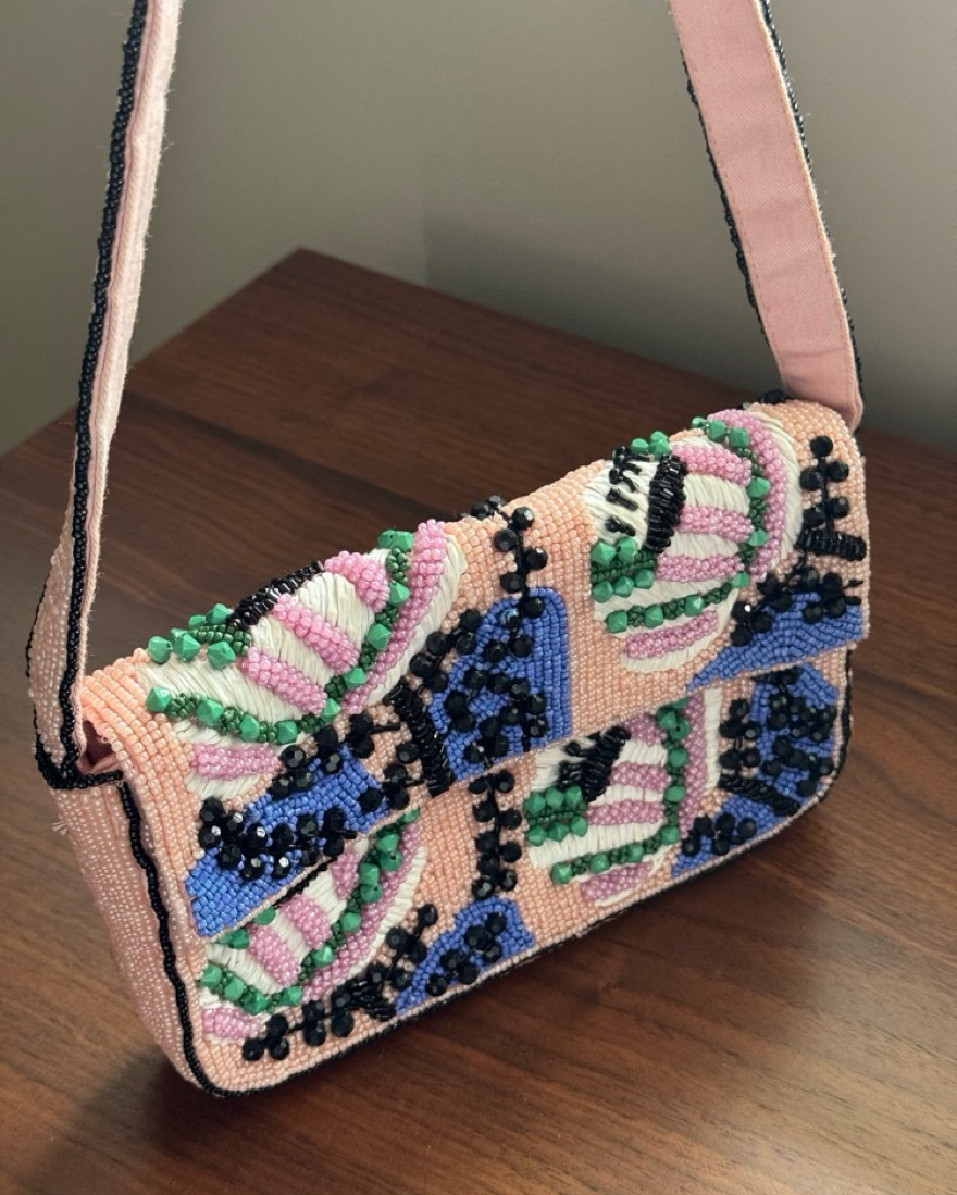 Pink beaded dupe do the Tommy Staud bag from Anthropologie!