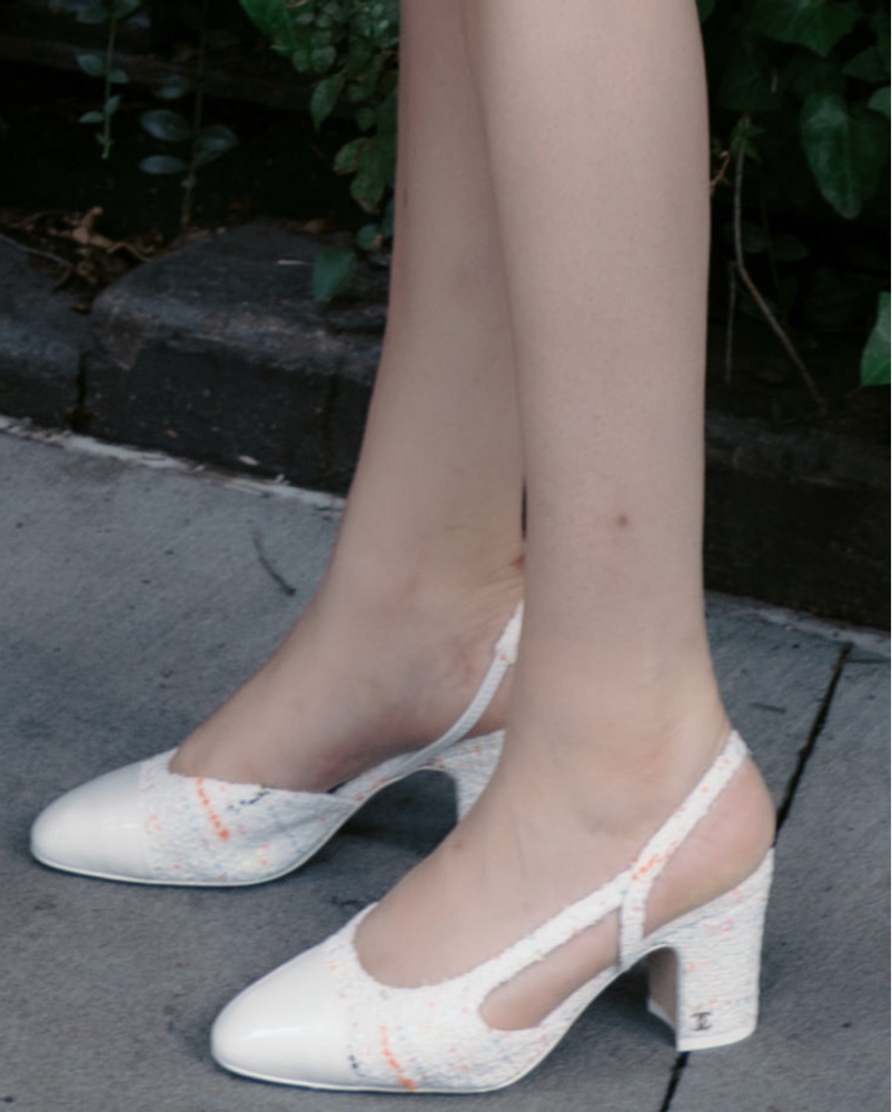 Chanel White Tweed Sequin Slingbacks by Chanel - Pickle