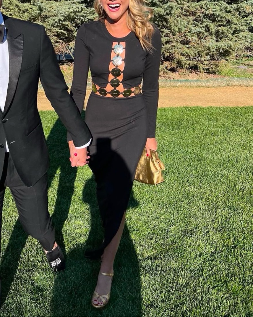 Absolutely stunning and comfortable dress. Get compliments everytime I wear! Hemmed to fit my frame at 5’4 with 3 inch heels.