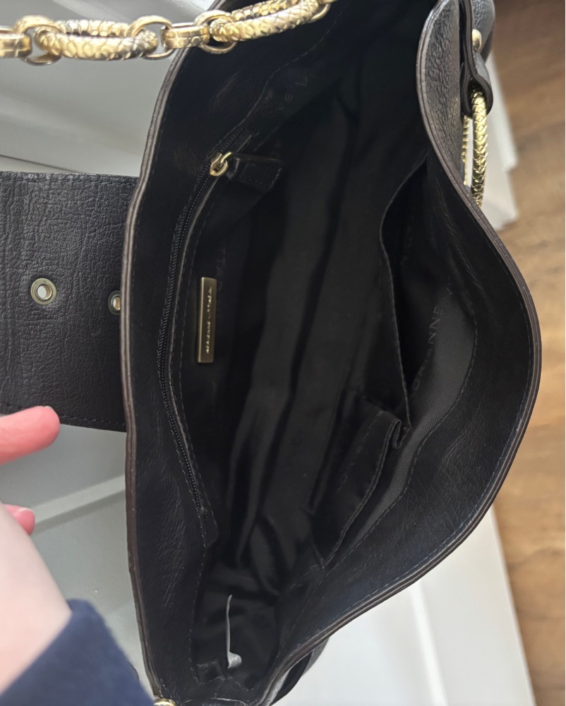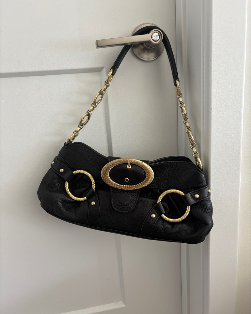 Chic Black Leather Handbag with Gold Hardware by Source Unknown - Pickle