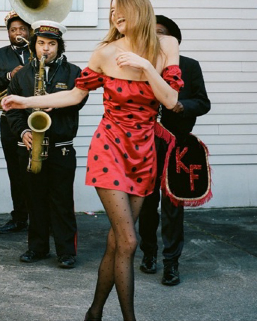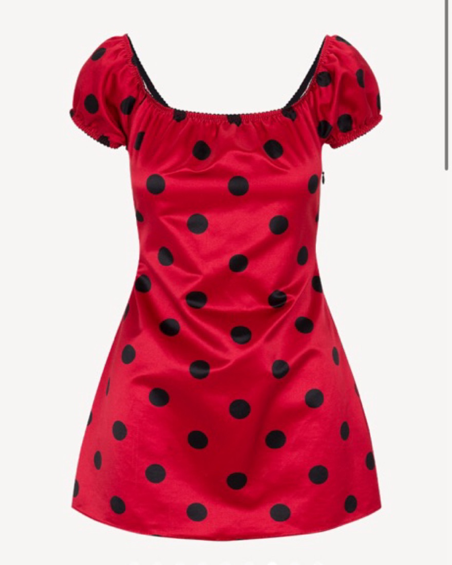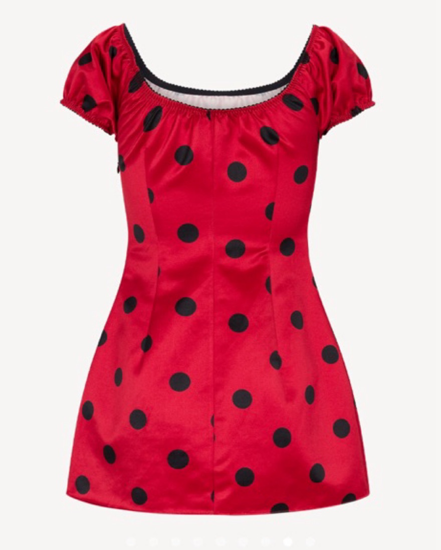 Silk mini dress red with black polka dots XS