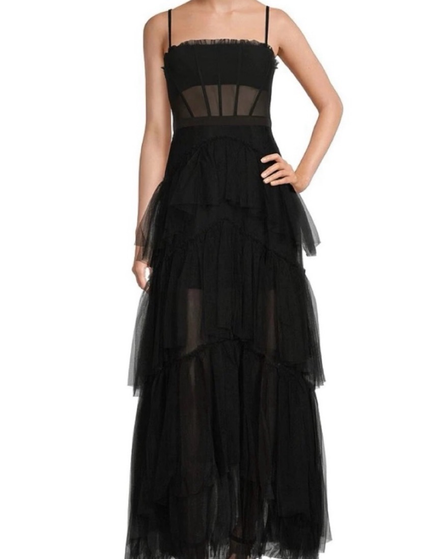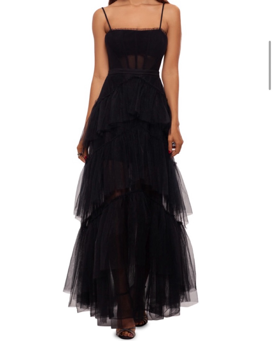 Black Tiered Tulle Ruffle Gown