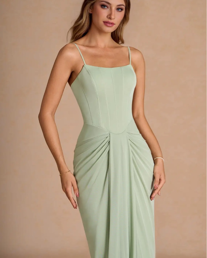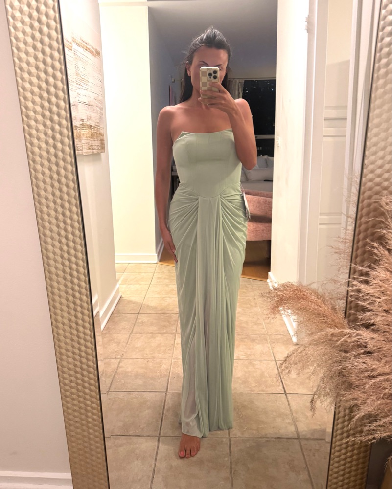 This new, never been worn (tags are still attached) dress is perfect for a formal event! The light, sage green color gives off warmth and effortless class.