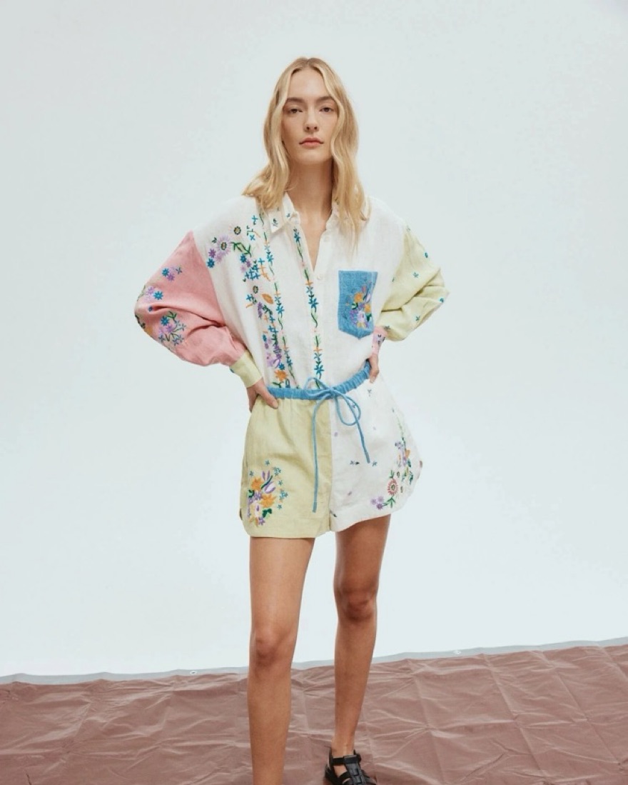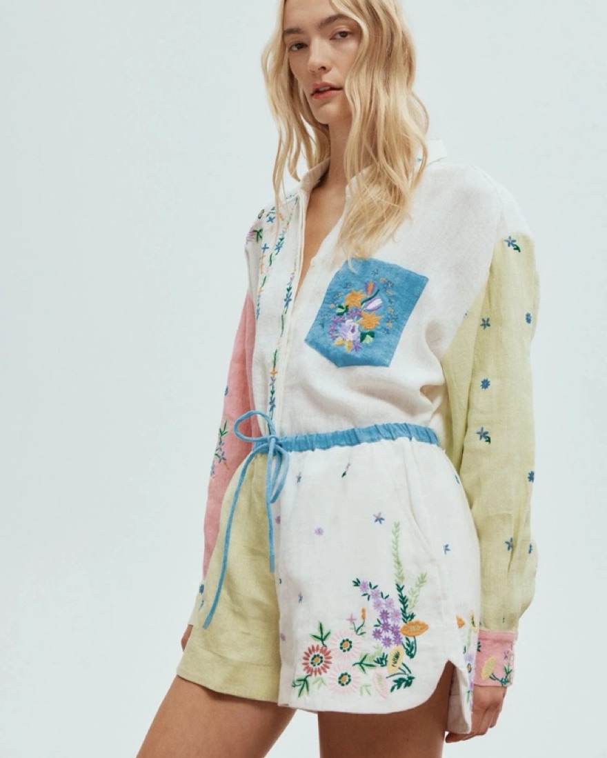 Embroidered linen shirt and shorts set. 100% European Flax.