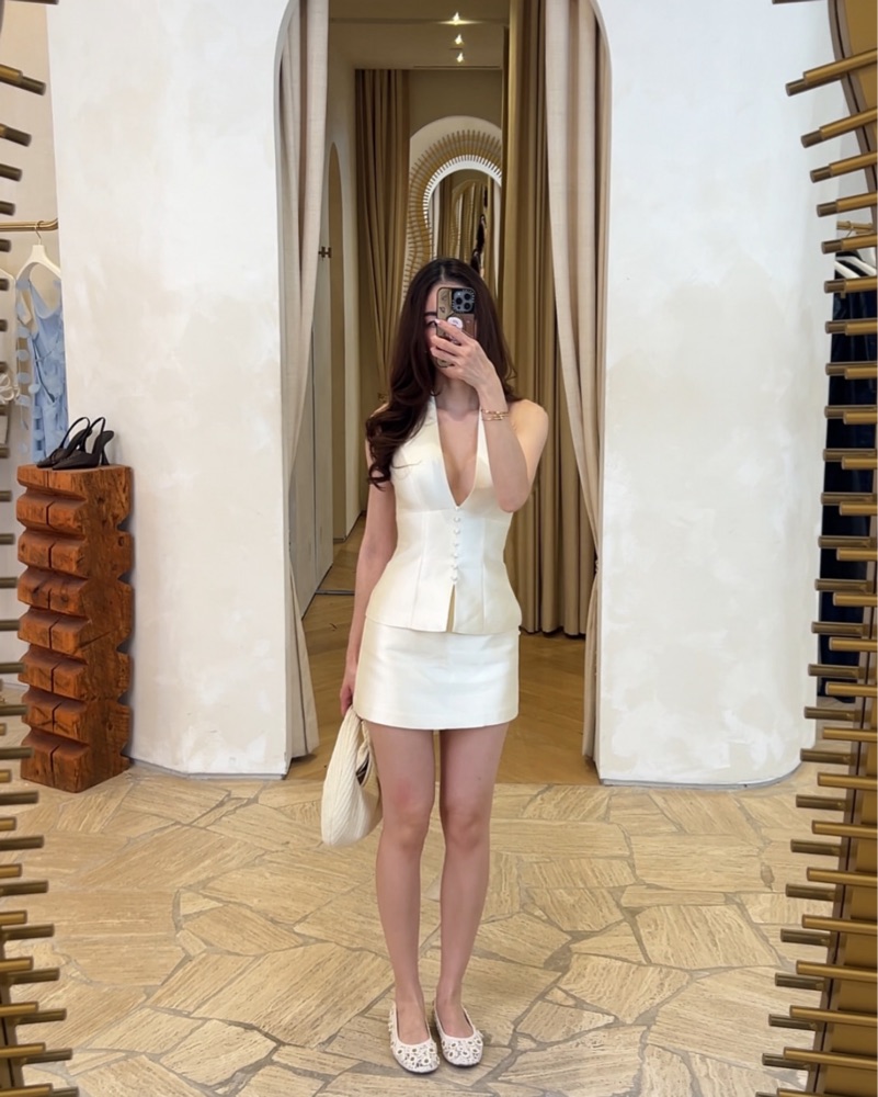 Crafted from lightly lustrous taffeta, the structured silhouette is elevated by a row of fabric-covered buttons-making it a standout piece for spring and summer. Fit: B 35in x W 27in x H 37in