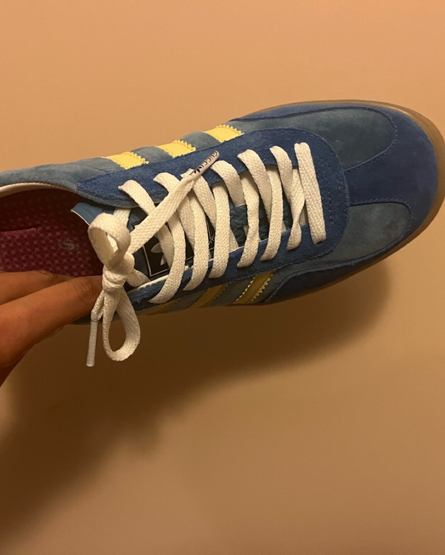 US Mens size 5, fits like a womens 7. Made in Italy, the low-slung silhouette carries a blue velvet upper with tonal suede construction on the eyestay and forefoot overlay.