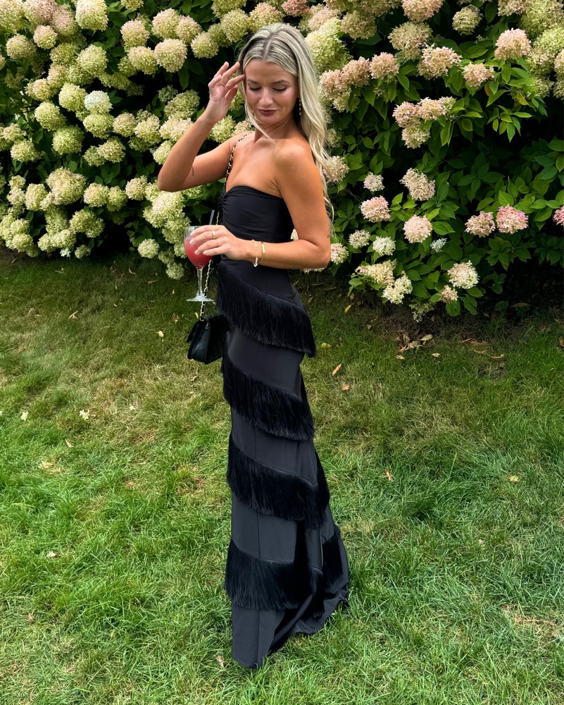 House of Harlow 1960 Black Fringe Dress, perfect for weddings!! Only worn once, in great shape! I also get notifications and will reply š«¶š¼ size xxs! Iām 5ā3ā and 106 lbs for reference!