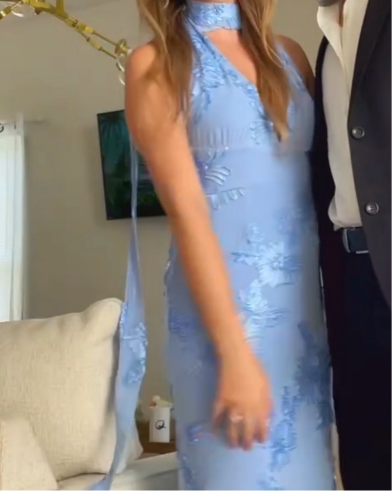Blue Floral Formal Dress W/ Neck Scarf by Boutique - Pickle