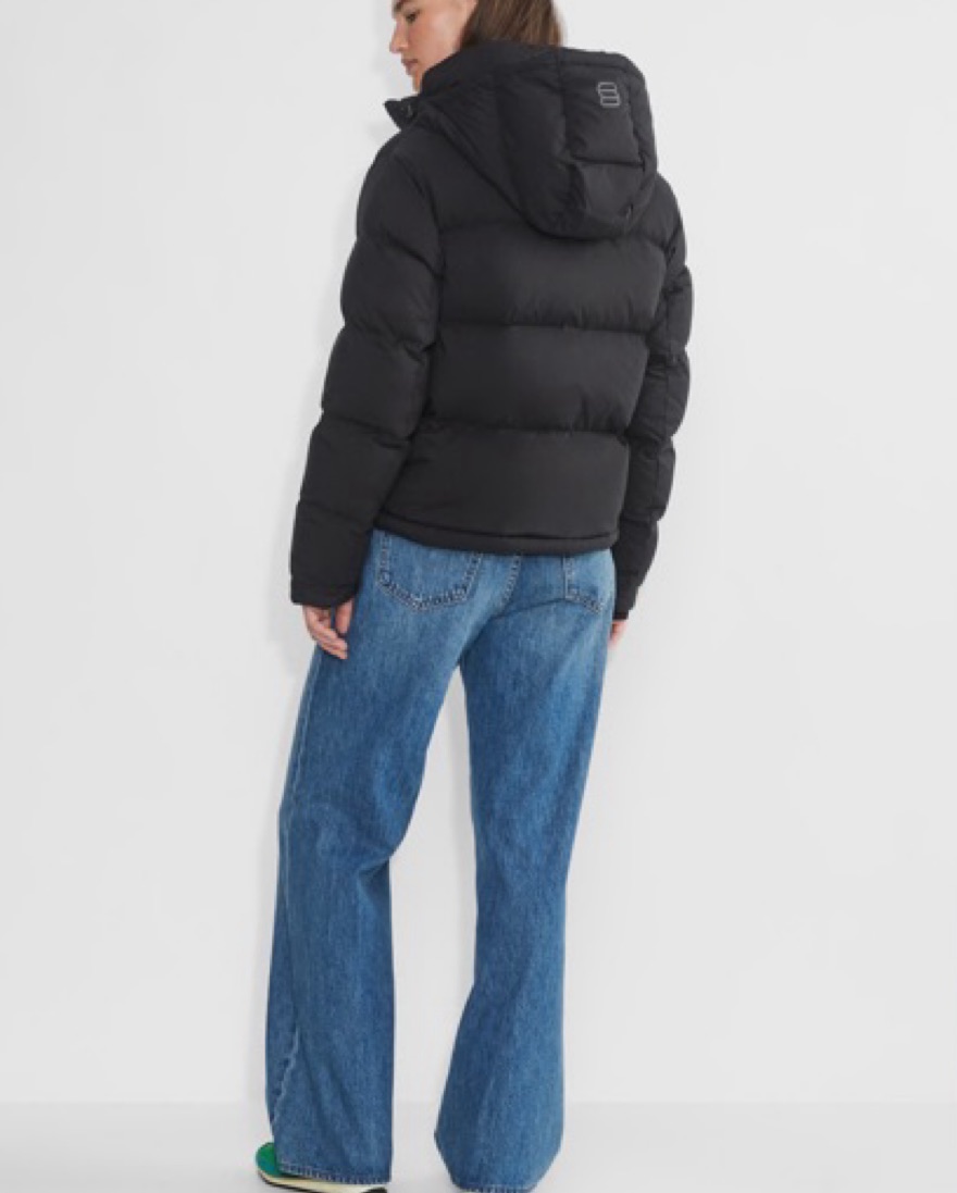 XS black jacket with hood and pockets. Water resistant and warm from Aritzia