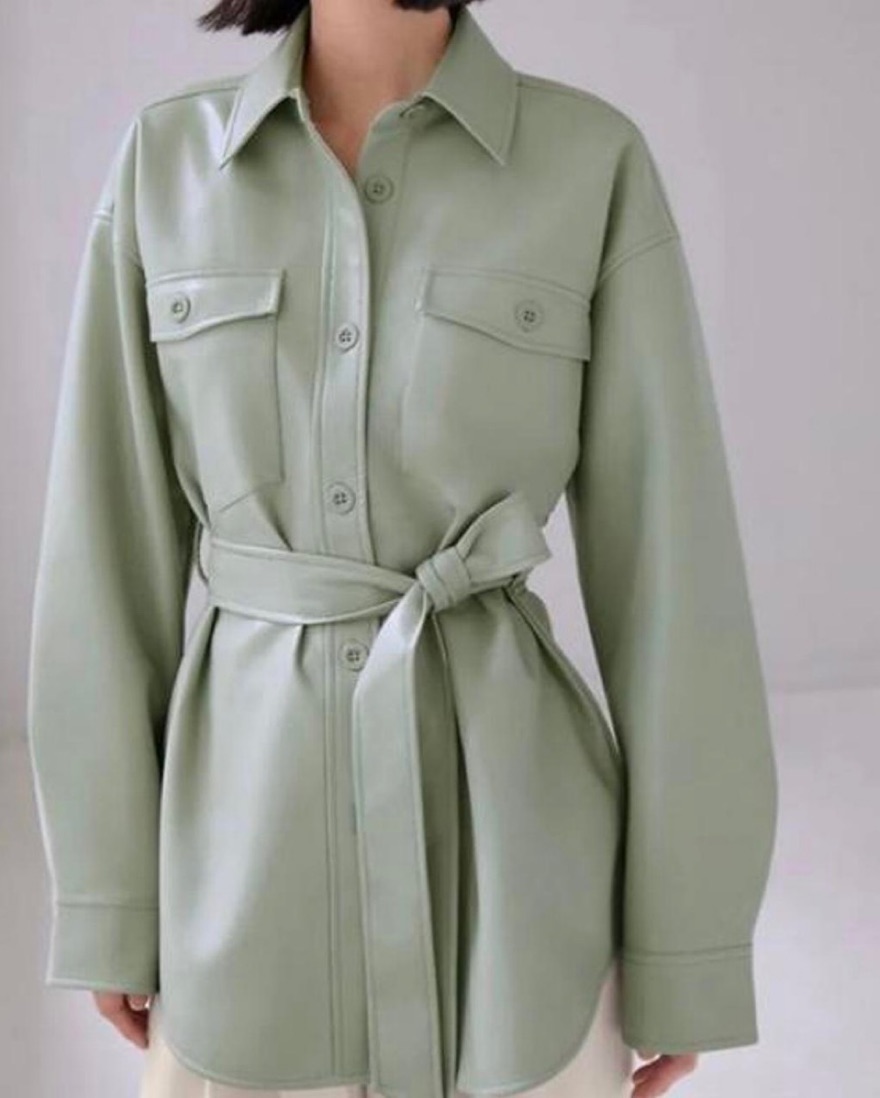 Aritzia Babaton green vegan leather trench coat with an attached waist belt. Perfect piece for fall and very flattering. Size S.