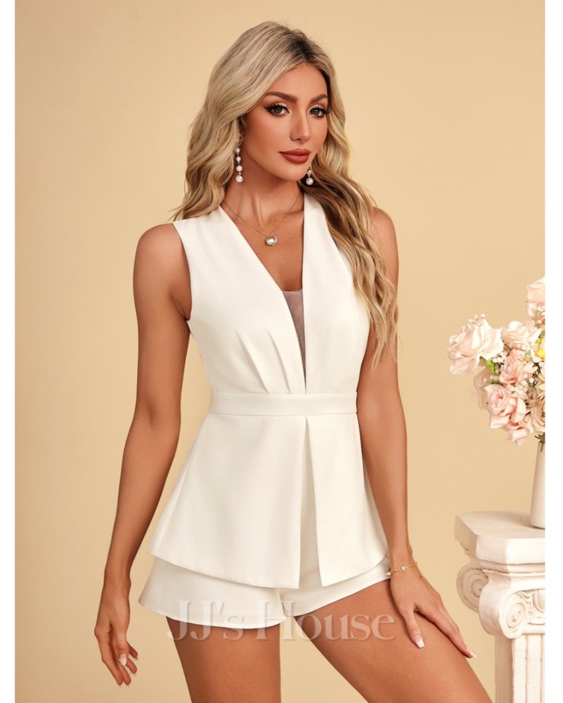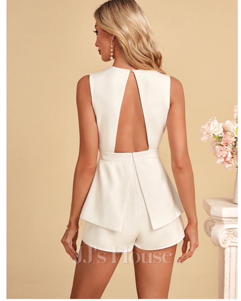 White Shorts Jumpsuit Romper by JJs House - Pickle