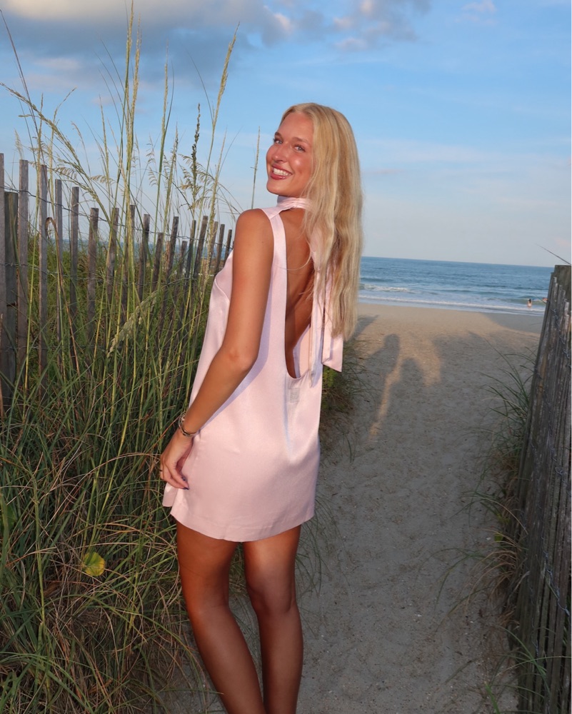 this dress is sooo comfy and chic, ties in the back so it’s adjustable!