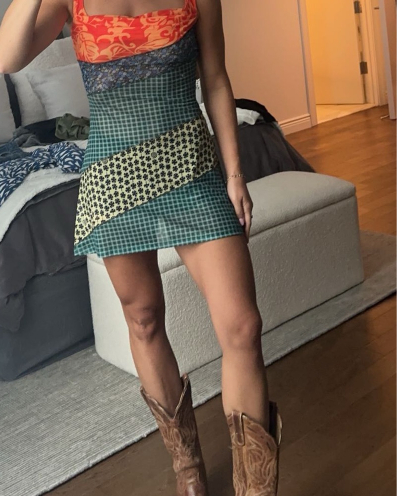 Miaou dress, sheer, needs under garment, cowl neck, cute with cowgirl boots. Includes 18 dollar dry cleaning fee in rental price