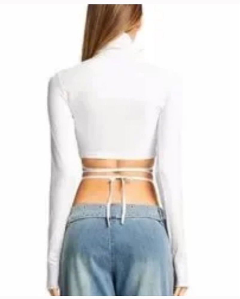 I.AM.GIA Afia Lace Up Turtleneck White Wrap Cut Out Crop Top Shirt