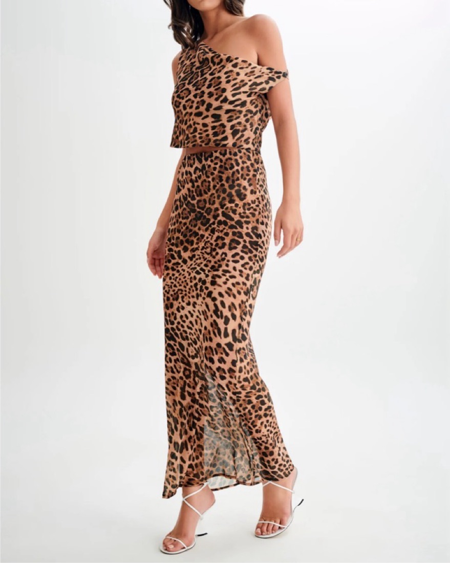 Leopard print set in amazing condition. The waist on the skirt is elastic so its very stretchy. can be worn high waist or low