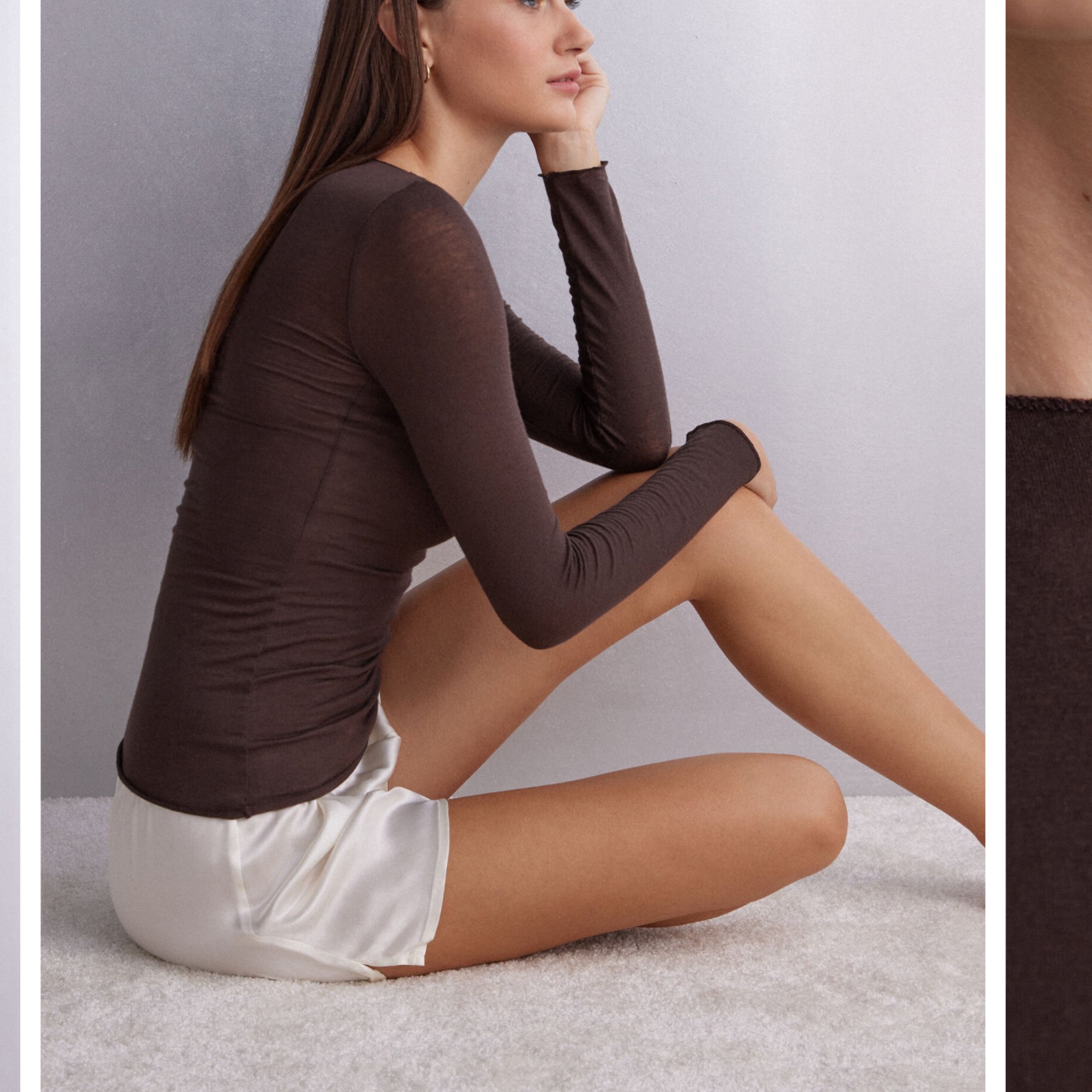 Brown intimissi long sleeve viral top seen on many celebrities (little see through - wear bralette under as pictured on me)