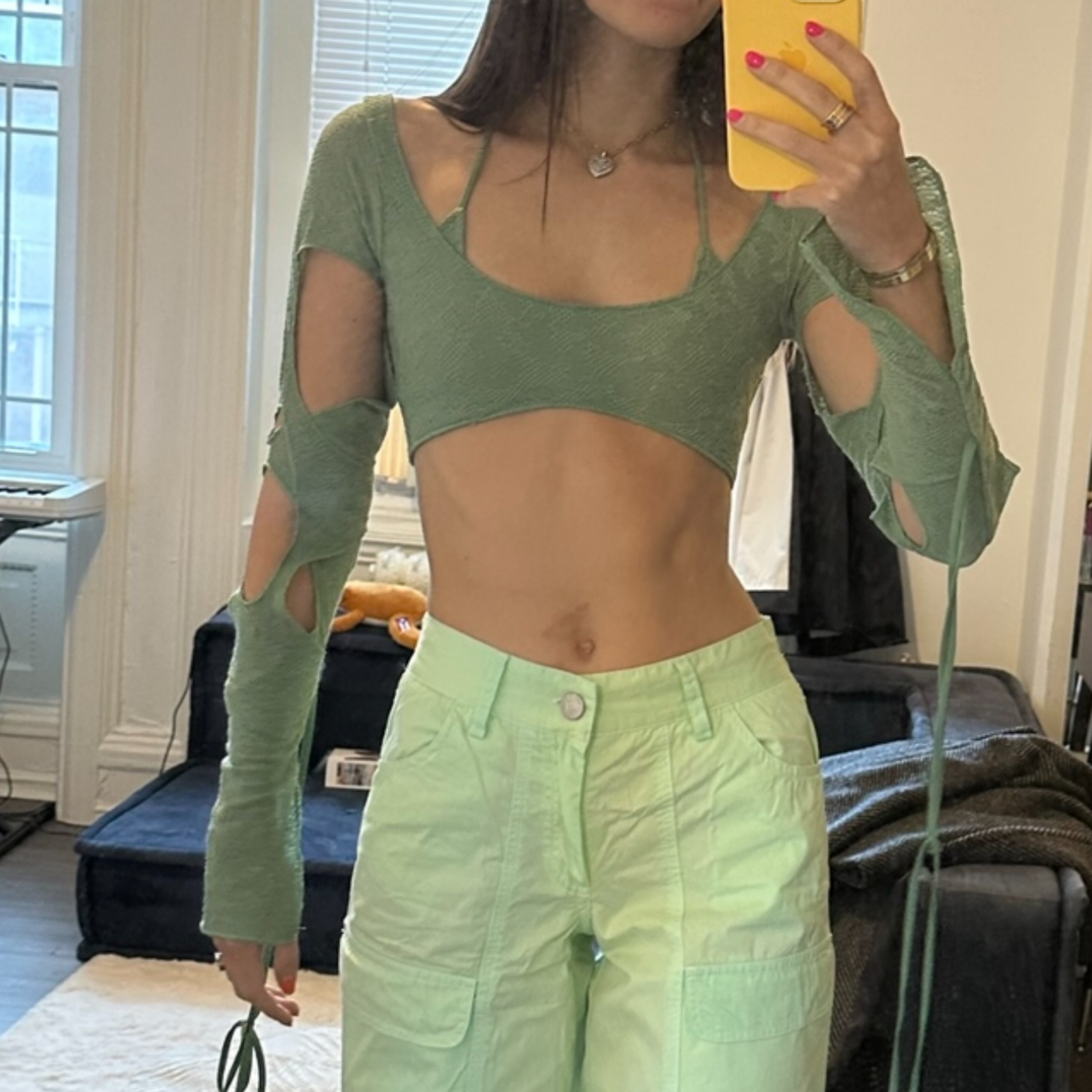 Oh Polly Green Crop Shirt Long Sleeve by Oh Polly - Pickle
