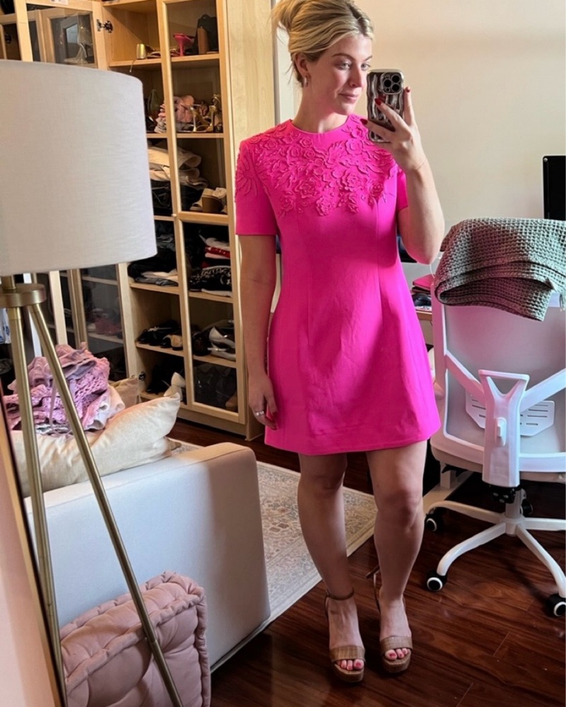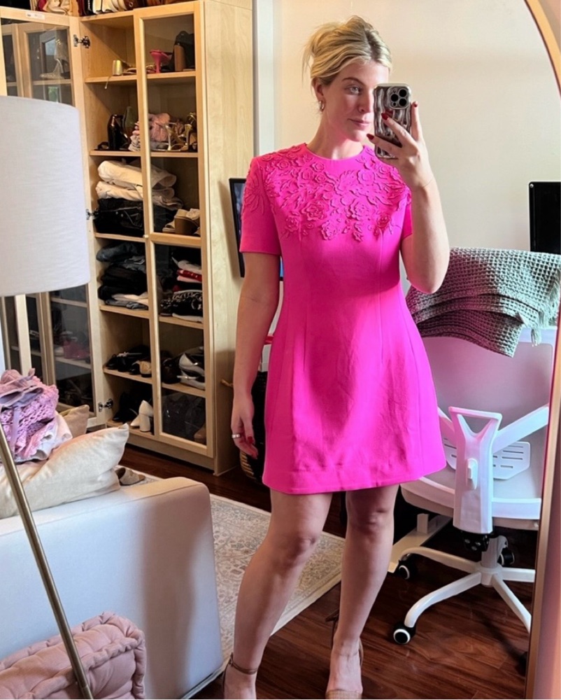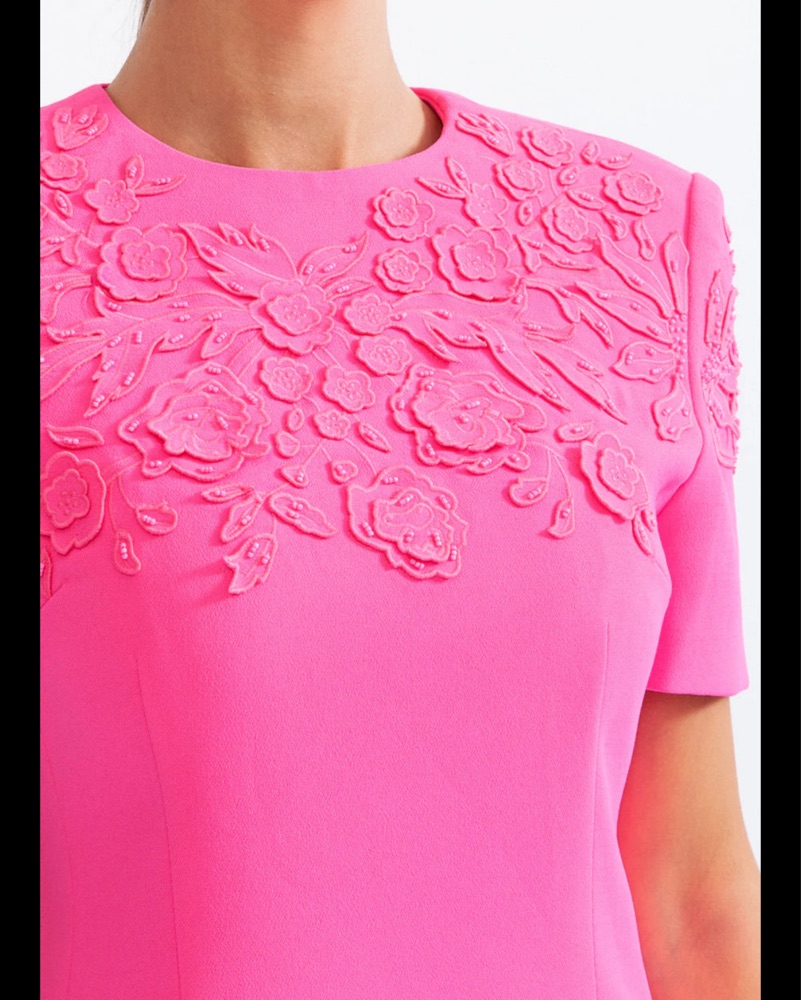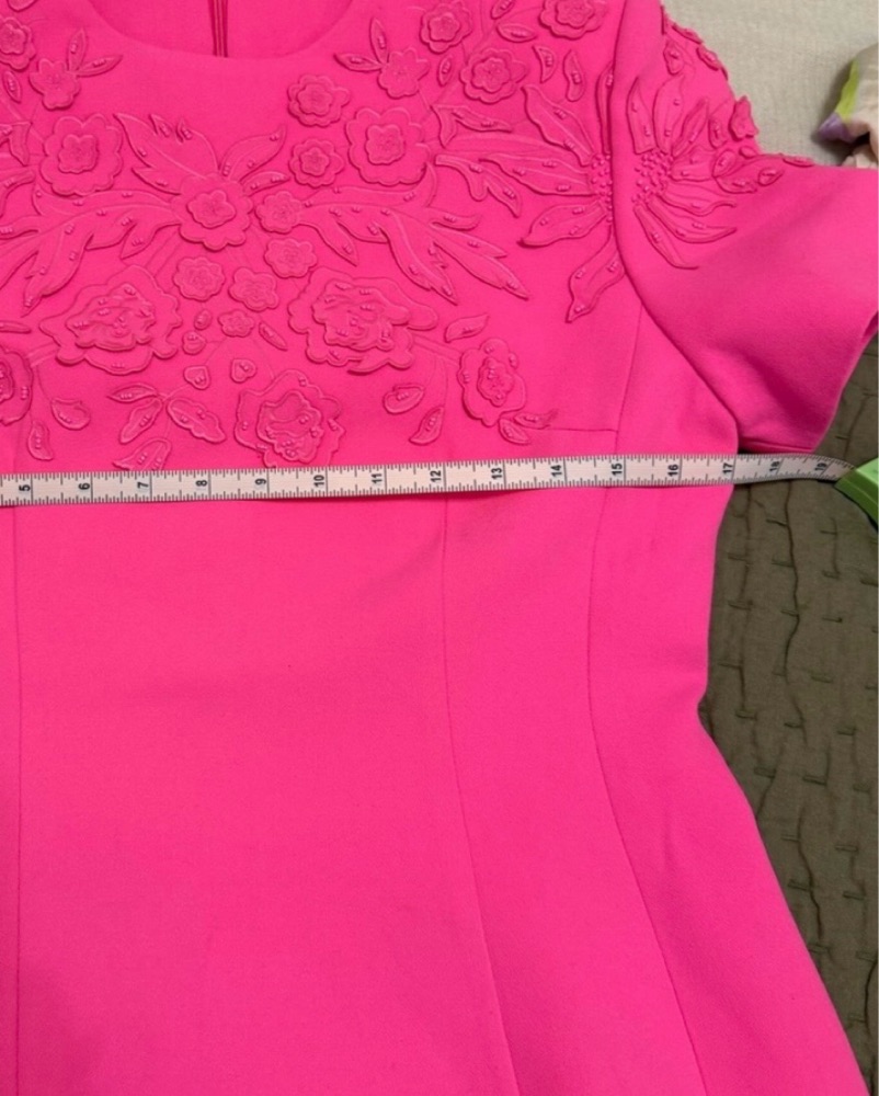Sierra Darien mini dress structured. Short Sleeve Embroidered Dress with 3D Flowers - Fuchsia. Never worn. Valentino lookalike. True size medium.