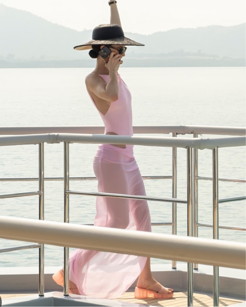 The perfect pink bathing suit & cover up! You will look so CHIC wearing this. Worn by Chloe on the White Lotus!