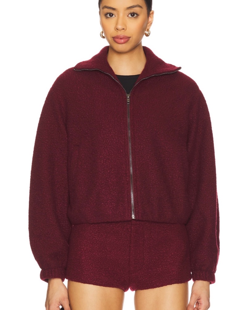 Burgundy Amanda Uprichard X REVOLVE COMO BOMBER JACKET! The matching shorts are available on my page.