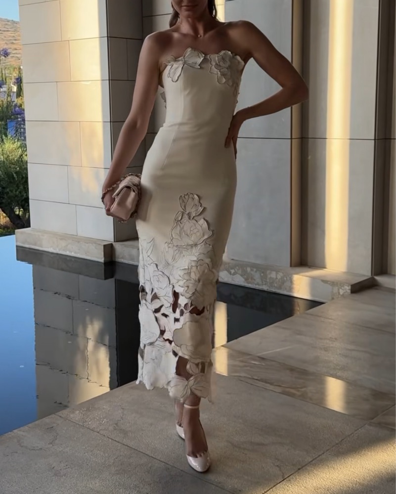 Leo Lin Applique Cut Out Ankle Dress