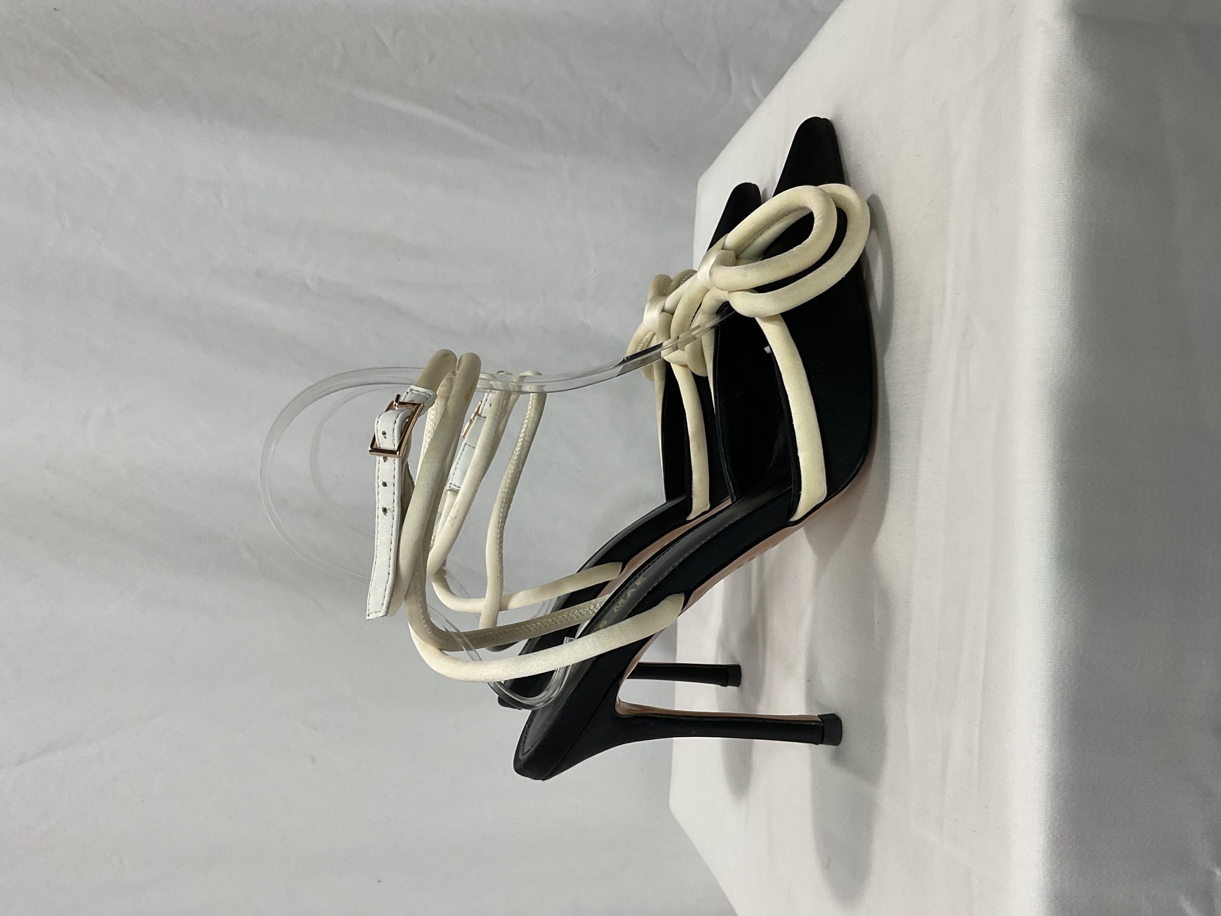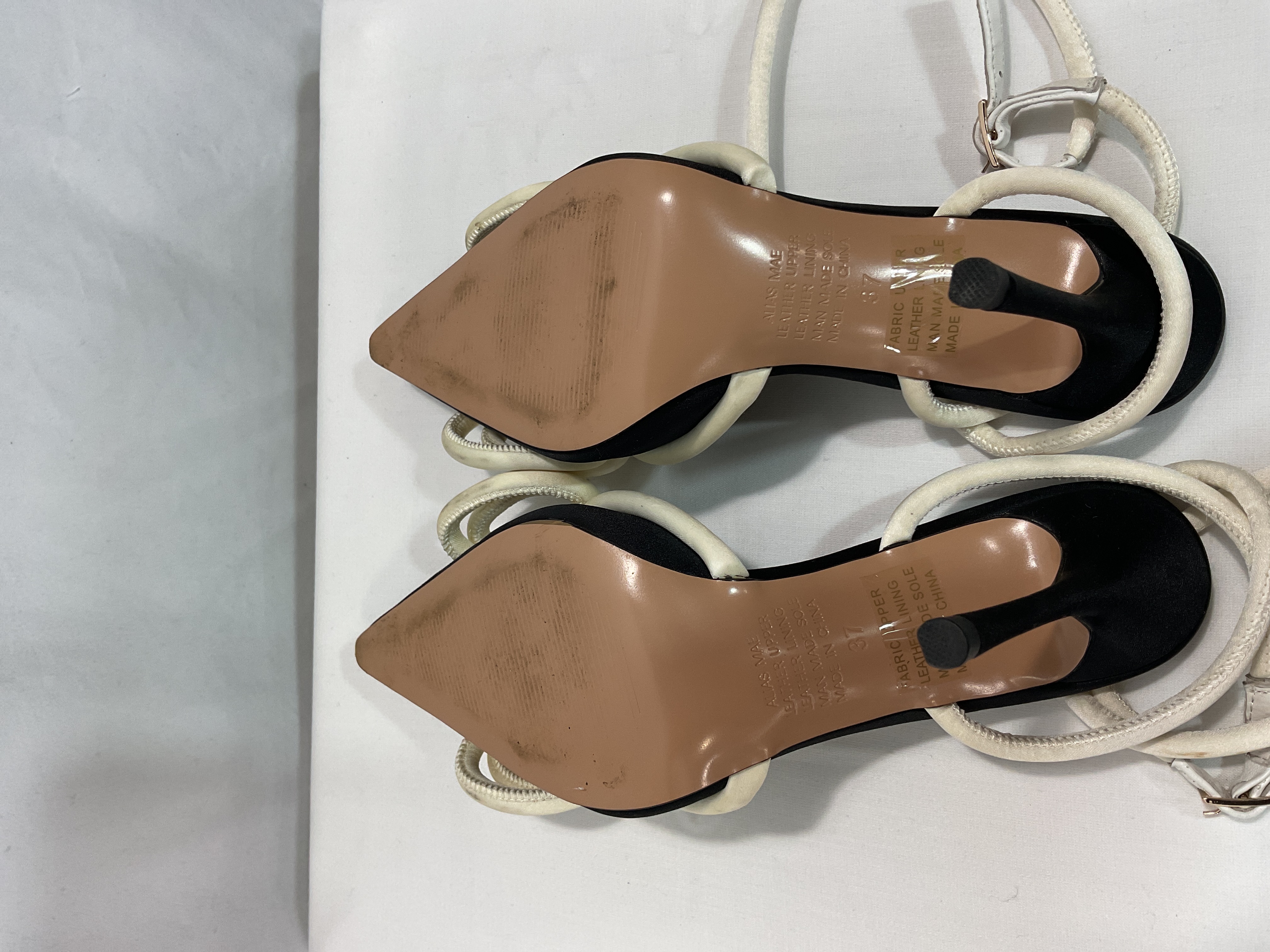 Bold black and white satin makes a statement at any event. Elegant heel height adds sophistication to cocktail dresses or tailored trousers.
