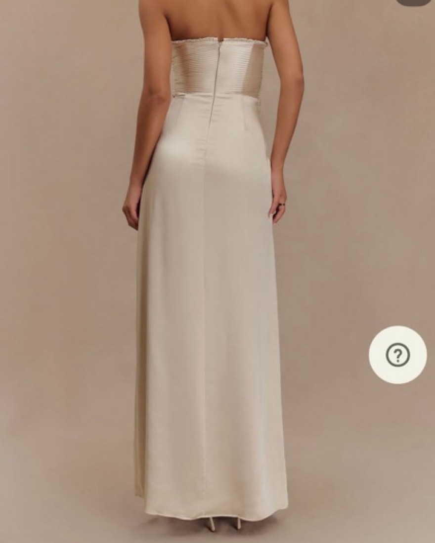 This stunning strapless gown exudes sophistication and timeless elegance. Perfect for formal events or special occasions.