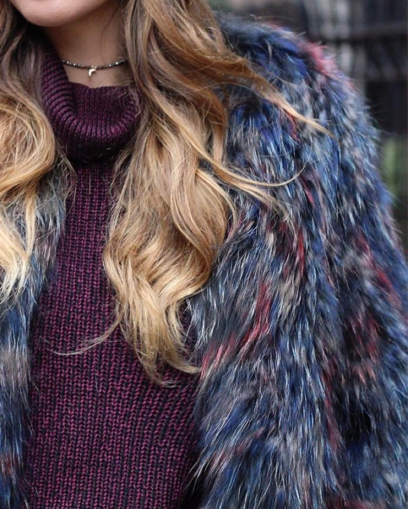 Real Multicolor Fur Coat
