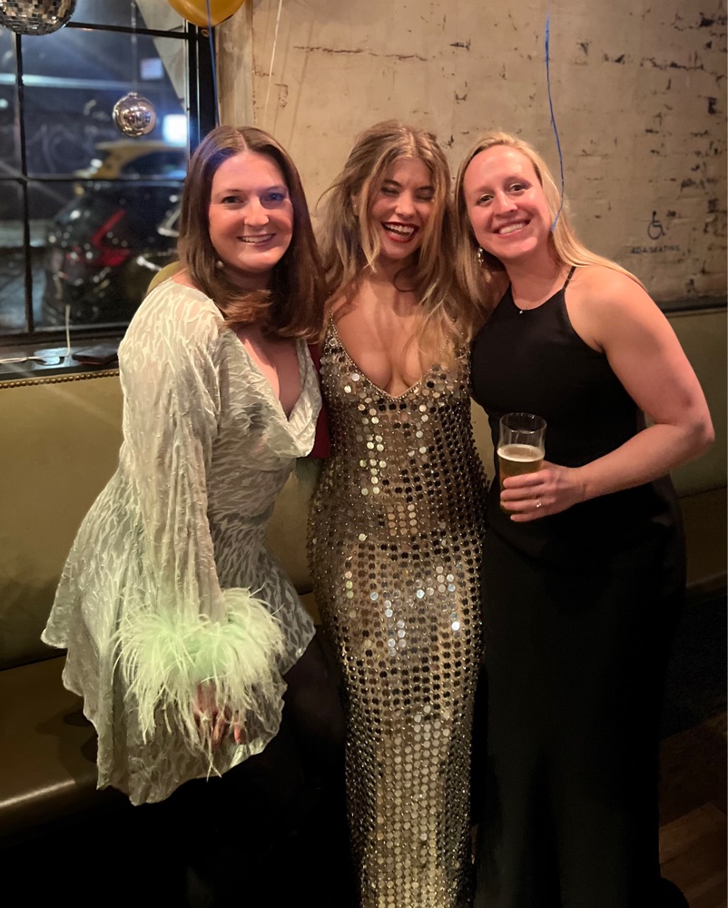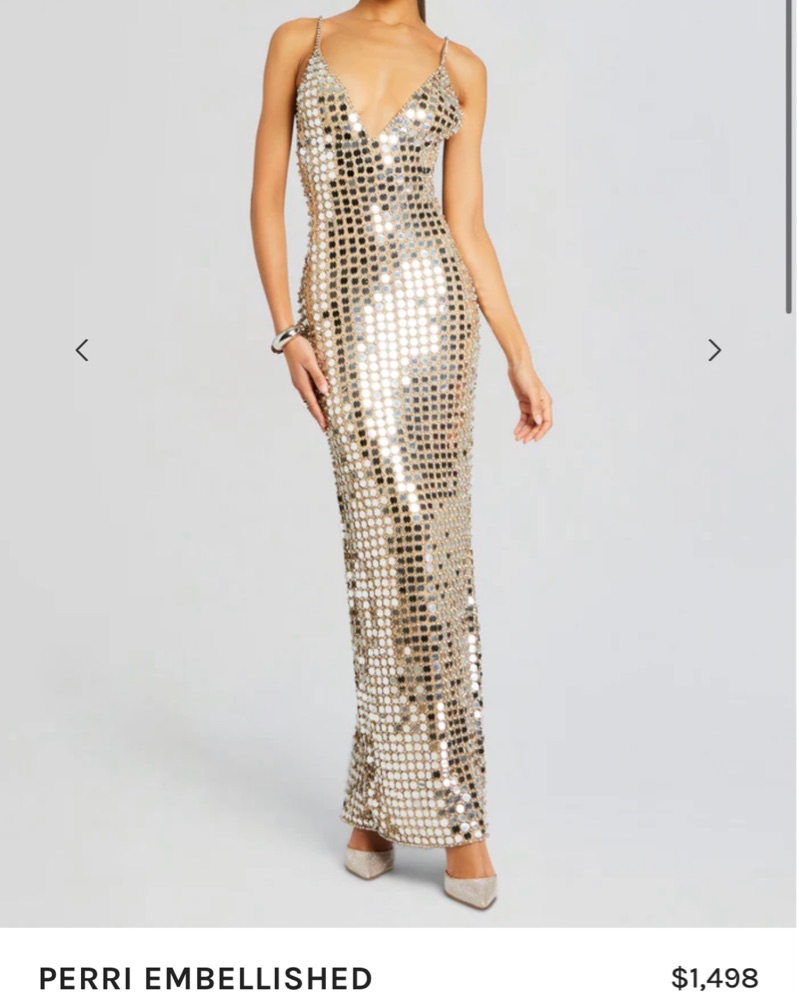 My beloved 2025 NYE dress! This is Retrofete’s Perri Embellished Dress in Champagne Dust (color no longer available). Fair warnings: This dress is very heavy and has several missing sequins. I wore it once and the tags are still on. For reference, in the photos I am 150ish lbs