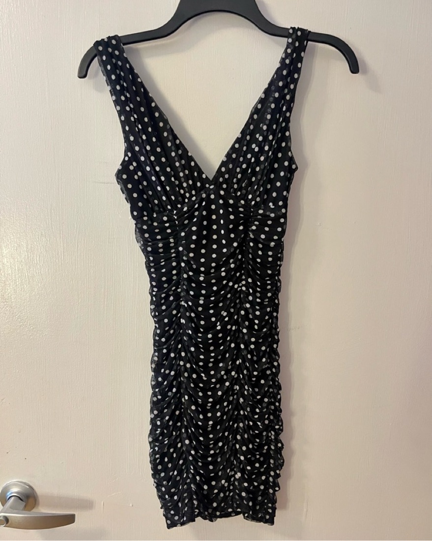 Bodycon vneck polka dot dress, zipper closure, flattering!