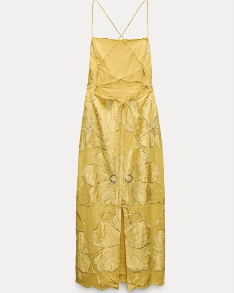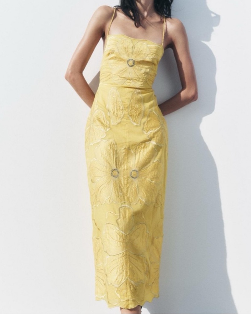 ZARA Embroidered Yellow Midi Dress by ZARA - Pickle