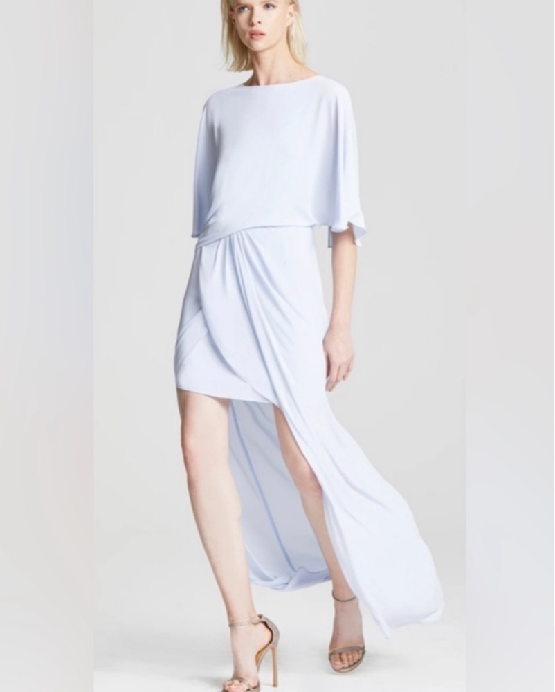 Halston Draped Maxi Dress Light Blue