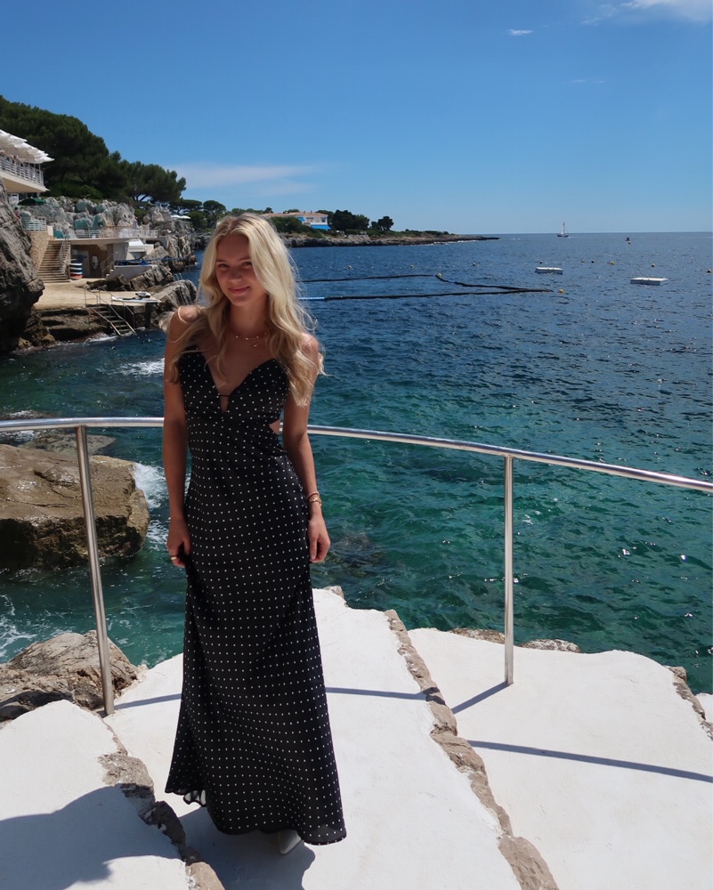Polka Dot B&W Cut Out Maxi Dress by Bardot - Pickle