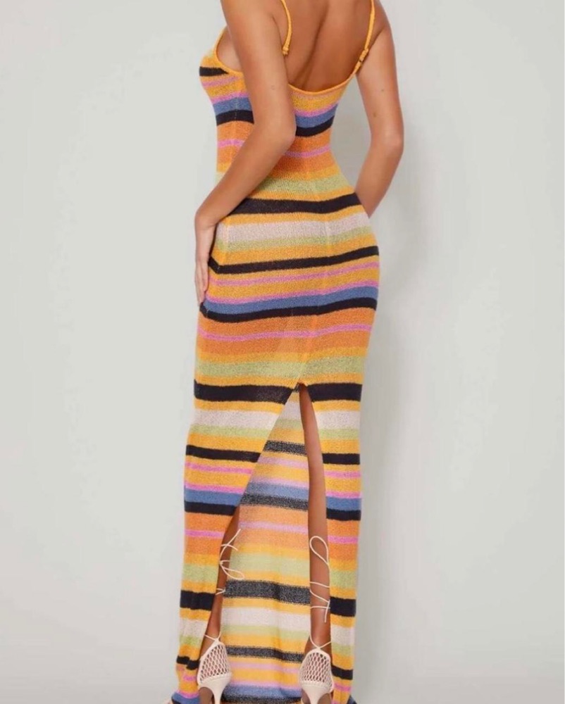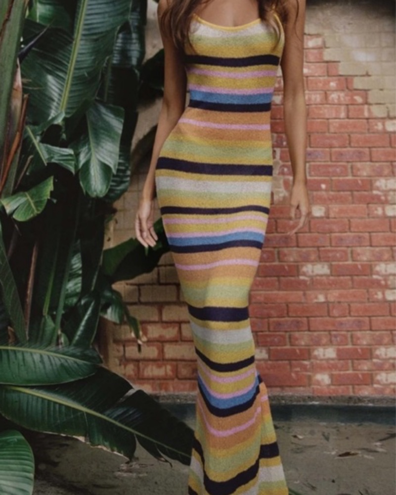 Striped Knit Maxi Dress by Tiger Mist - Pickle